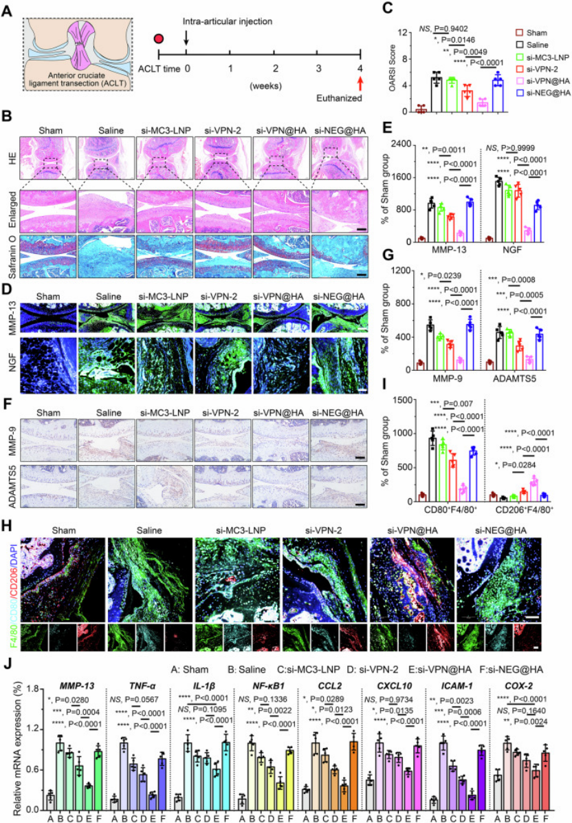 研究团队在在ACLT OA小鼠模型中证实si-VPN@HA的作用效果: