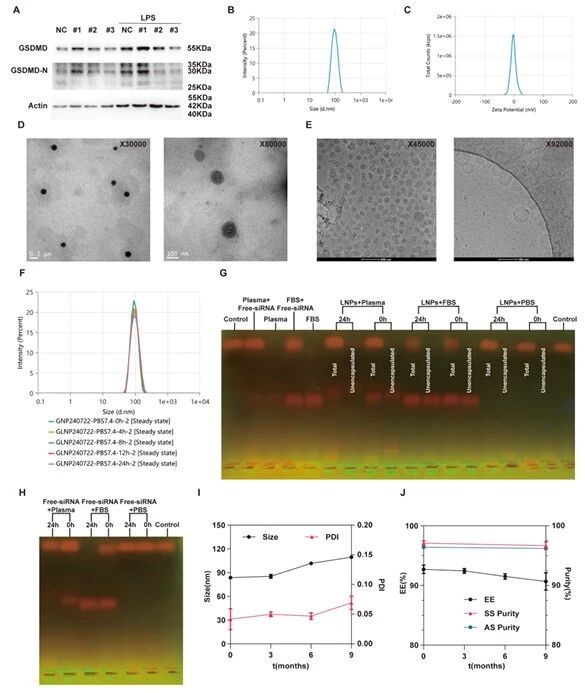 图例8:siRNA序列筛选及siGSDMD-LNPs理化性质与稳定性表征图