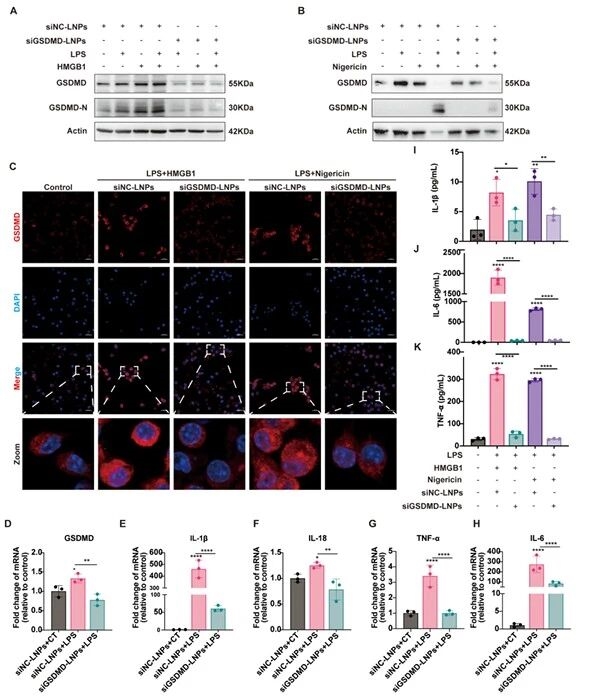 10.siGSDMD-LNPs在BMDMs中抑制GSDMD表达及炎症因子分泌的验证图